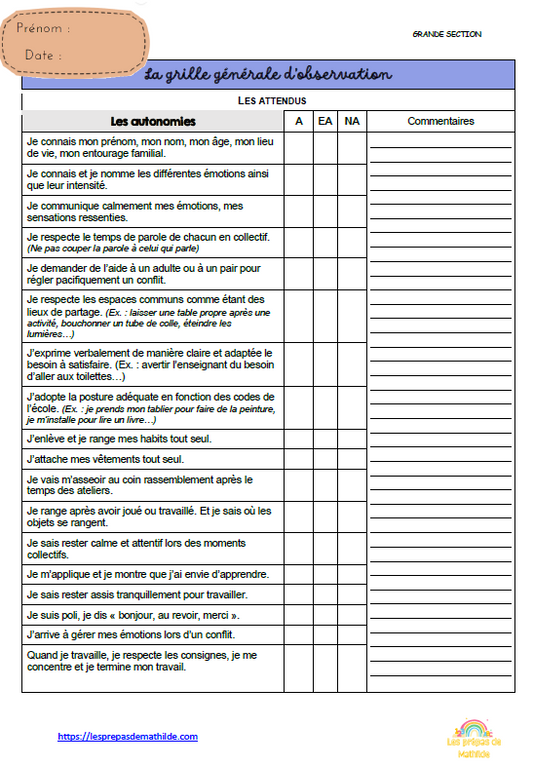M3 : Les grilles d'observations