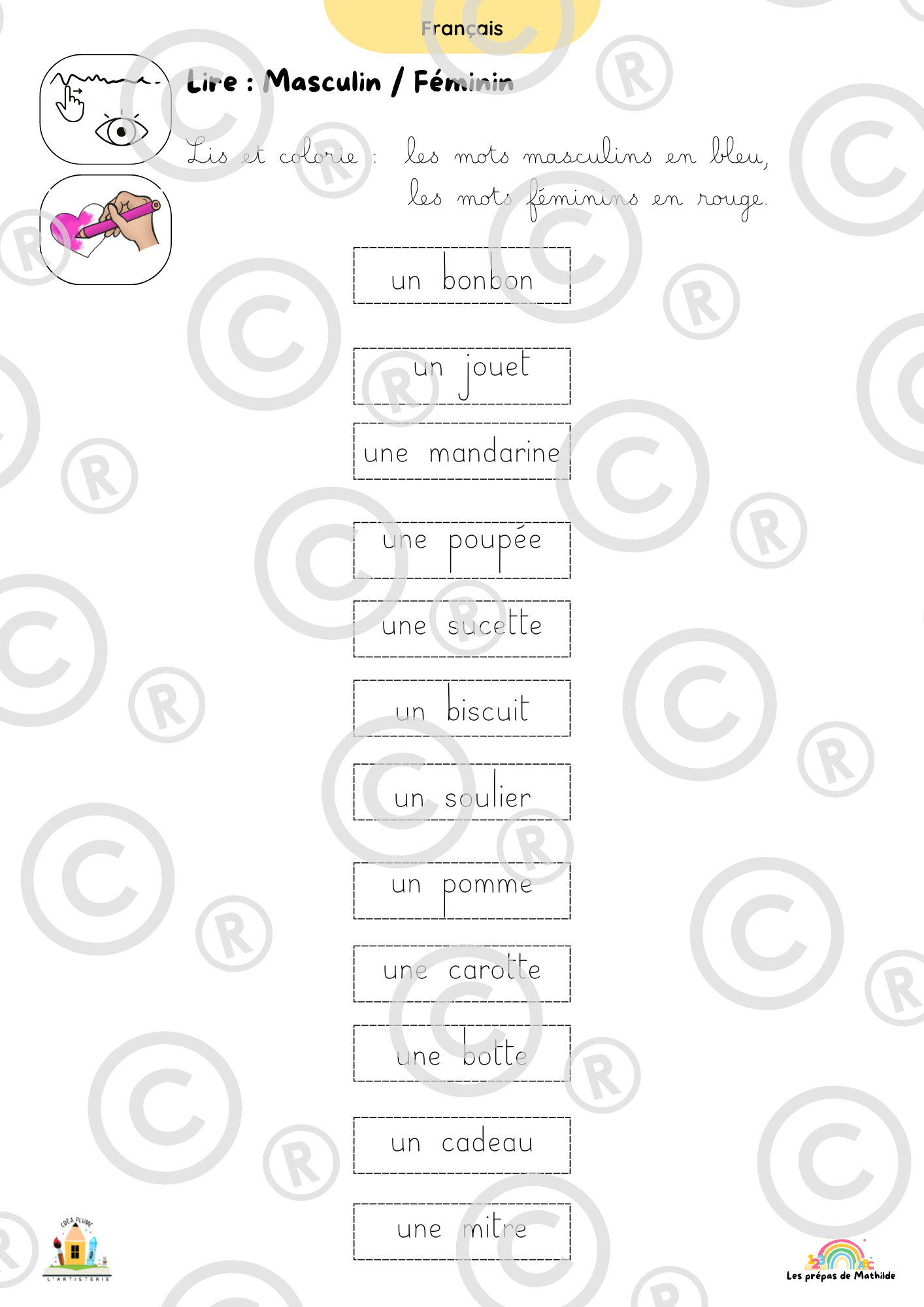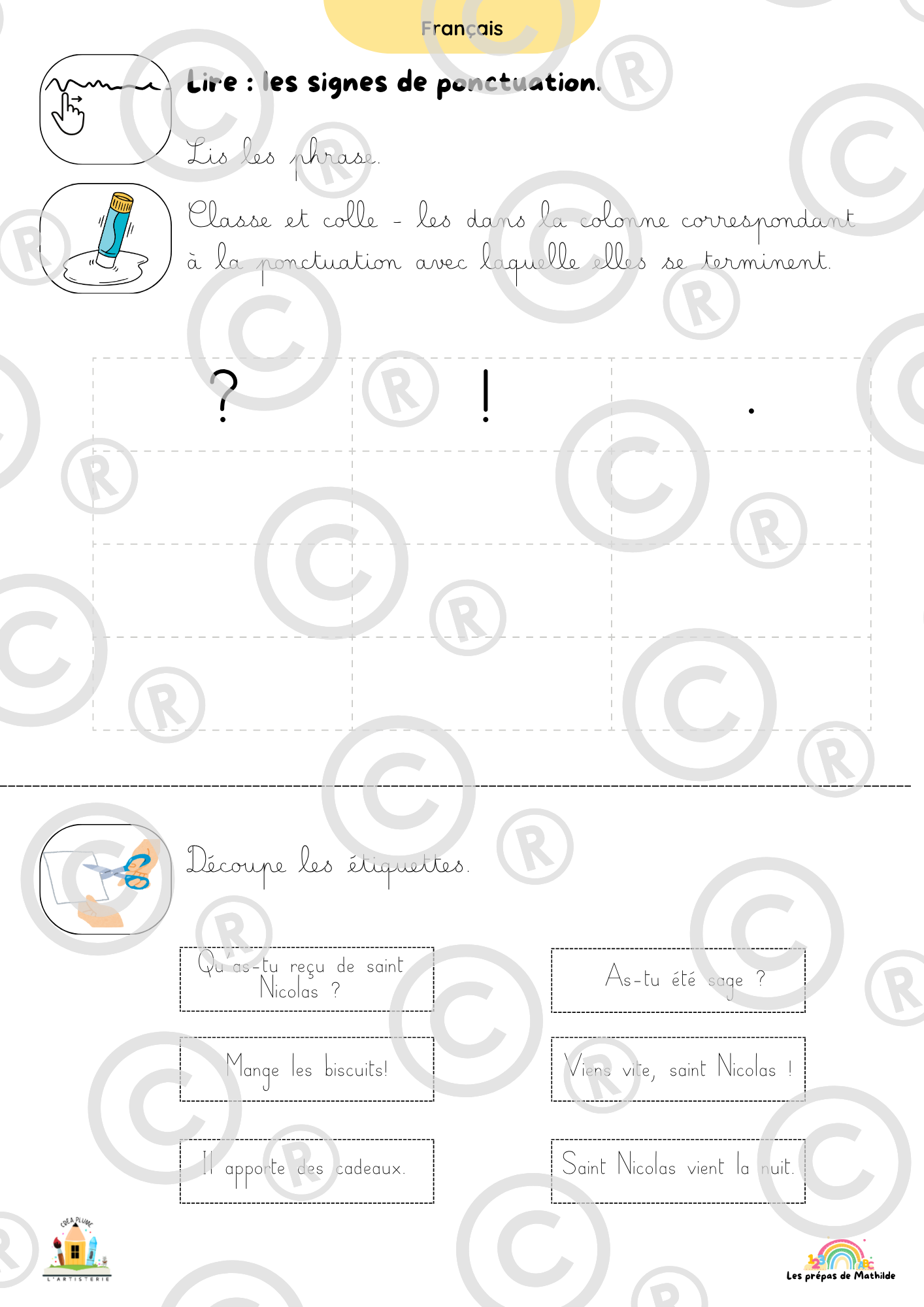 Français : Lecture, compréhension, vocabulaire et jeux de langage.