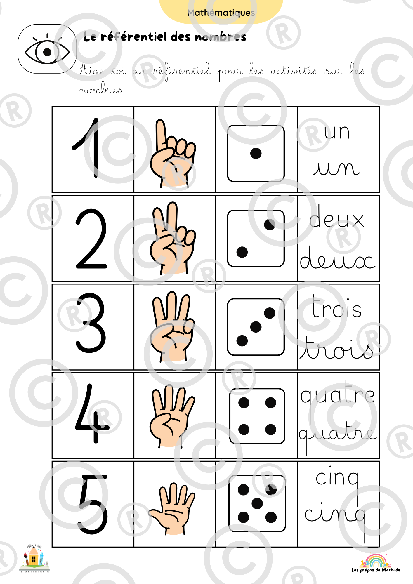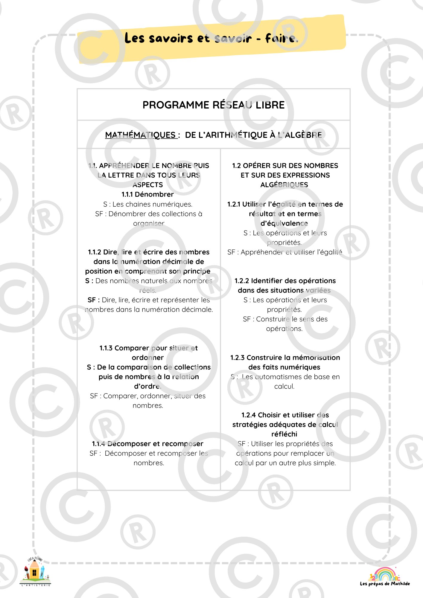 Mathématiques : Premières notions de nombres, formes, logique et calculs simples.